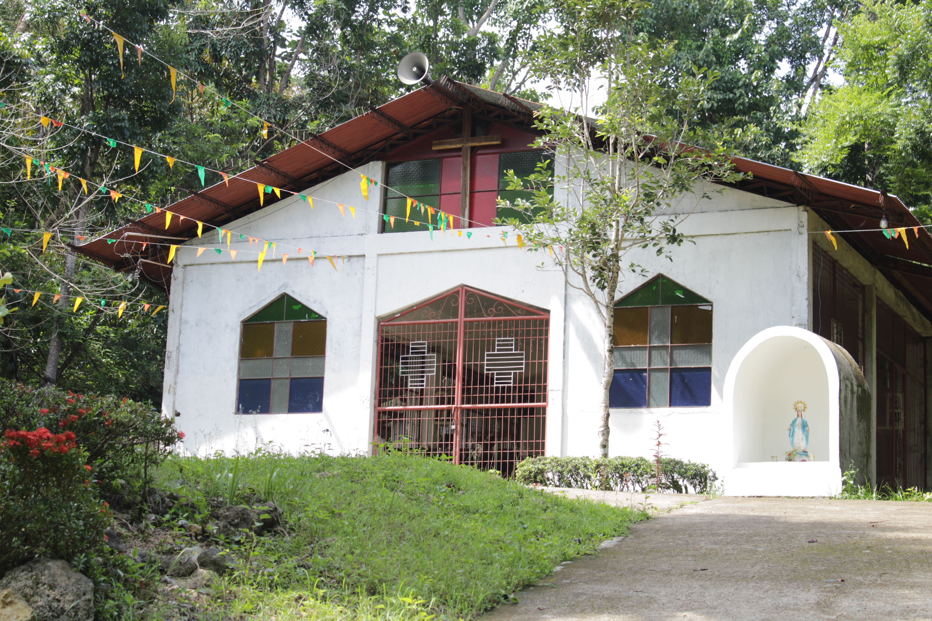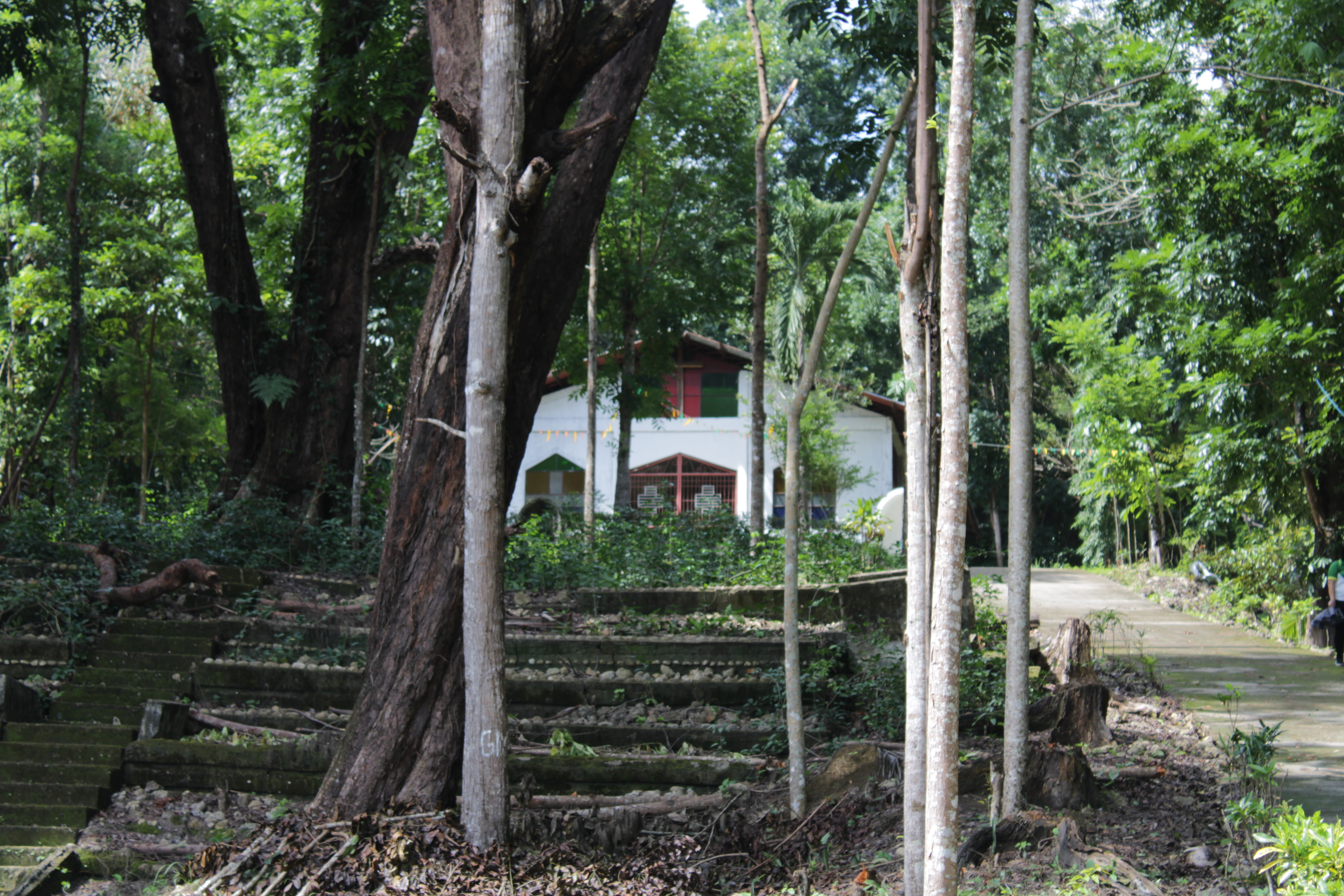 The university’s chapel is situated in the university’s horseshoe park, which is an uphill area with an overlooking view of the city’s agricultural fields in the distance. The topography allows a short pilgrimage, modeled after significant religious events pilgrimages. Surrounded by trees and shrubs, solemn catholic masses are held from time to time in the facility. Welded steel materials were used as walls in the construction of the chapel, allowing visitors to see the vegetation outside and to have a meditative experience with nature. Behind the chapel, is the “CPSU Legacy Park” which houses flora and fauna protected by the university and can accommodate for more spiritual activities even overnight camps.
