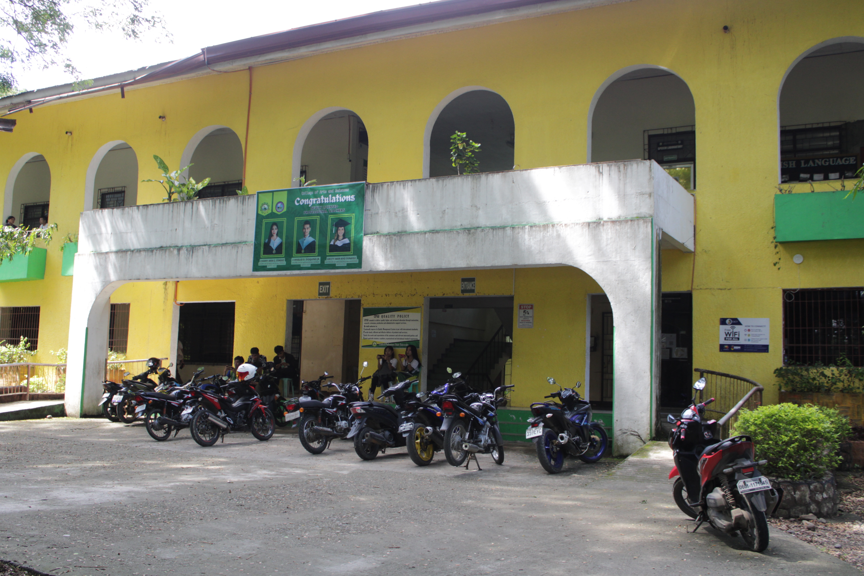In the advent of digital technology where education has somehow migrated to cyberspace, the university is helping students adapt by providing free internet connectivity within the campus. The Free Wireless Fidelity (WiFi) features of CPSU are strategically installed in areas where they can still connect to nature and the community. Green areas with benches are used by students as communal spaces for work and meetings—helping them overcome the physical and social isolation that comes with increased digitalization. Under the decades-old trees, the youth can lounge and meet with their schoolmates for their projects, and other collaborative endeavors in a lax mood to recuperate despite their workloads.
