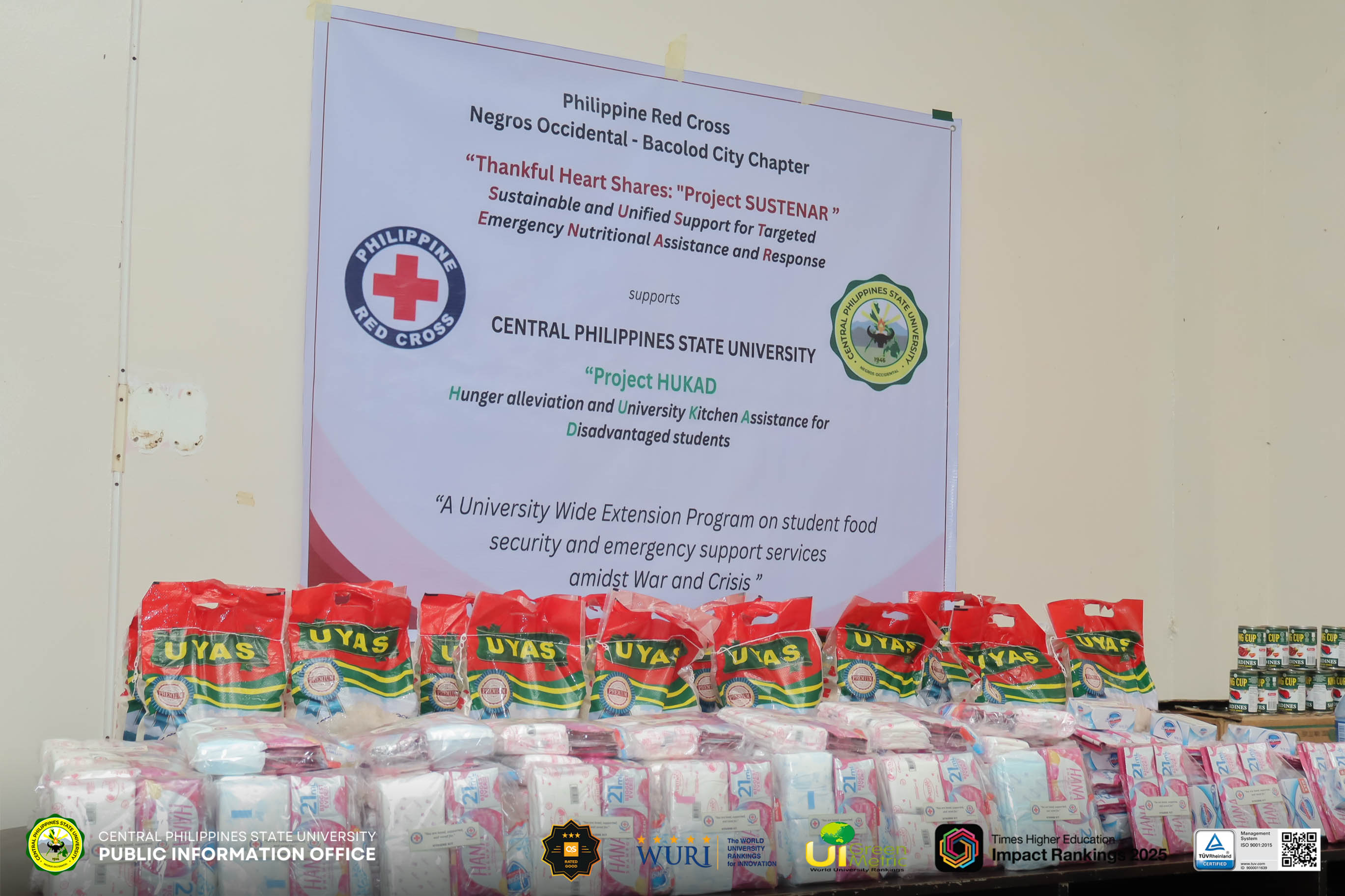 Aiming to support Central Philippines State Universityโs students, Project HUKAD, or the โHunger alleviation and University Kitchen Assistance for Disadvantaged students,โ is sponsored by the Philippine Red Cross Negros Occidental โ Bacolod City Chapterโs โThankful Heart Shares: Project SUSTENAR or Sustainable and Unified Support for Targeted Emergency Nutritional Assistance and Response," which was officially launched on April 14, 2026.