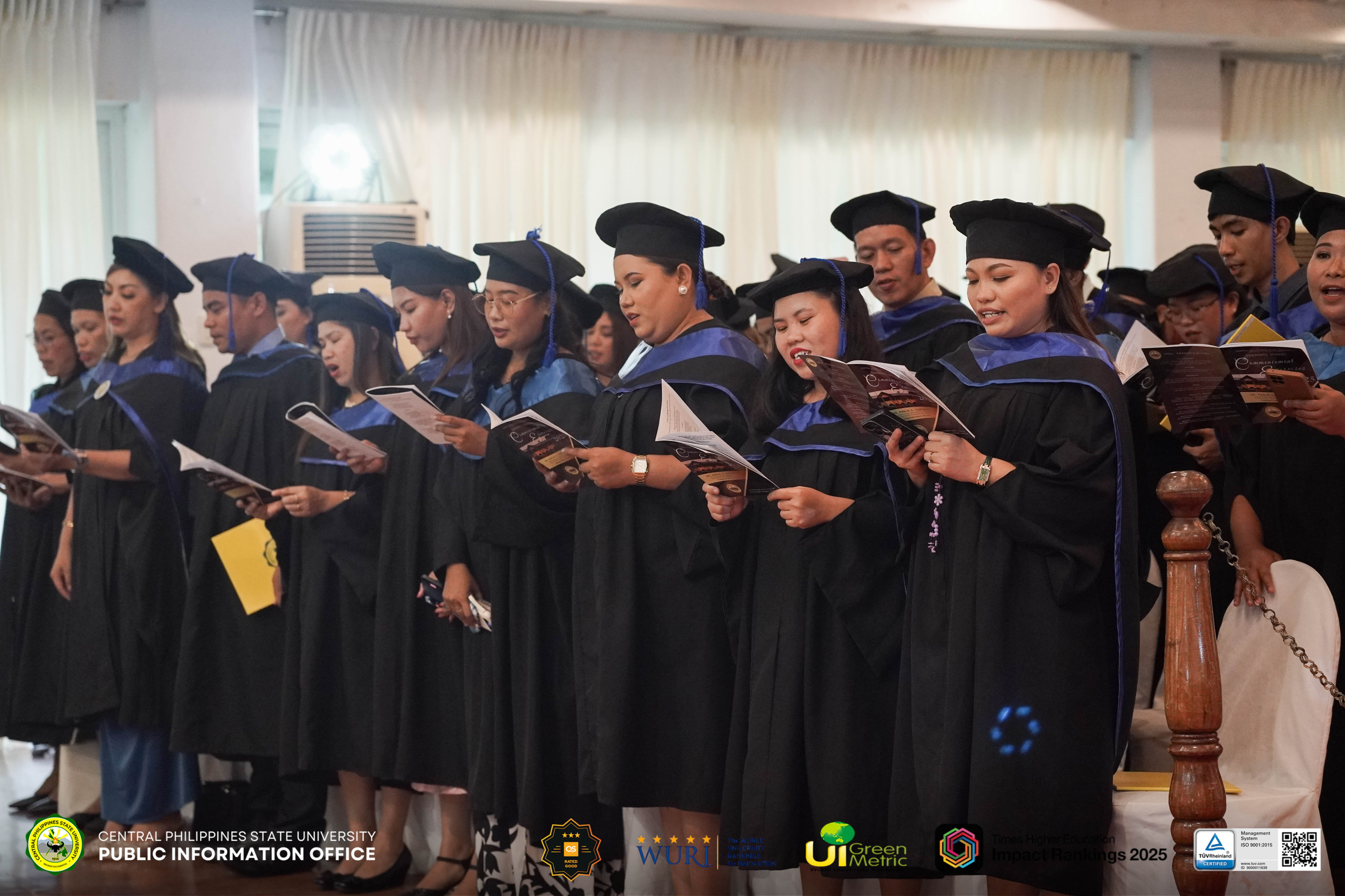 Fifteen doctorate and ninety-five masterโs degree holders marched at Central Philippines State University (CPSU) Graduate Schoolโs 2025 Commencement Exercises, representing three doctorate and eleven masterโs programs, on October 30, 2025.