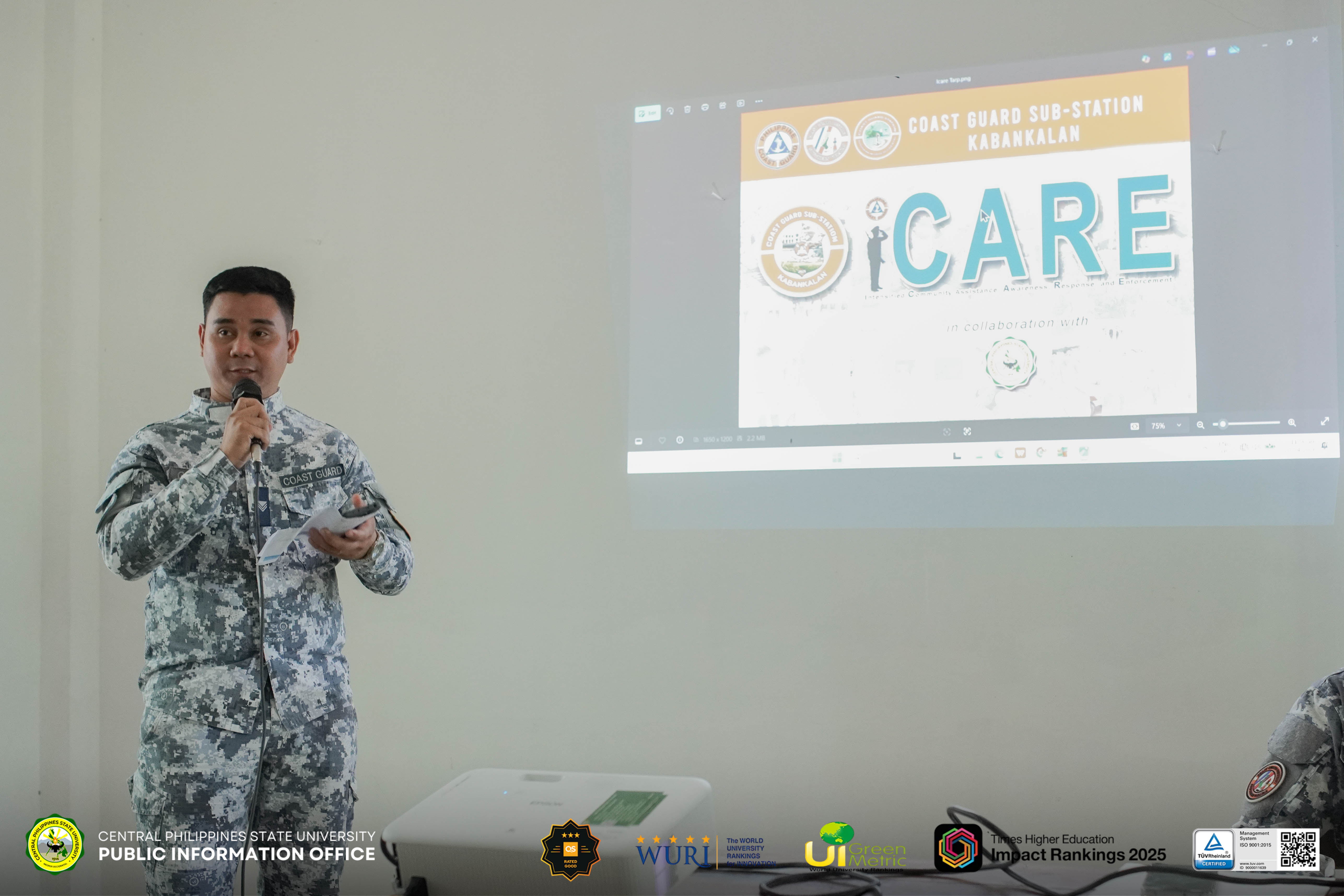 The Philippine Coast Guard (PCG) and Central Philippines State University (CPSU) - College of Criminal Justice Education (CCJE) successfully held the Intensified Community Assistance, Awareness Response and Enforcement (iCARE) Program to strengthen awareness of safety, discipline, and environmental protection.